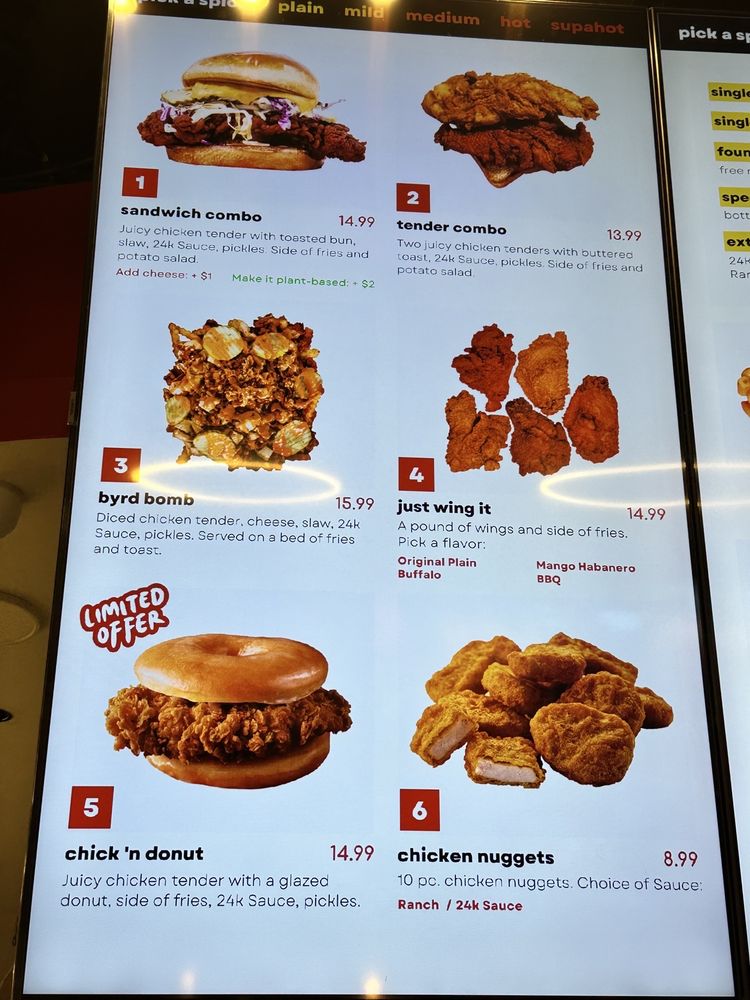 Byrd’s Hot Chicken in Anaheim, CA offers a modern and trendy dining experience with a focus on hot chicken sandwiches. Customers praise the flavorful and juicy halal chicken, customizable options, and accommodating staff. The menu includes vegan choices, making it suitable for various dietary preferences. The hot chicken sandwich receives high praise for its perfect seasoning and spice levels. The owner's pride in the service and food quality is evident in the personalized attention given to customers. The restaurant offers convenient amenities such as delivery, takeout, and waiter service. With positive reviews highlighting the delicious sandwiches, friendly staff, and unique 24K sauce, Byrd’s Hot Chicken proves to be a top choice for chicken lovers seeking a memorable dining experience.